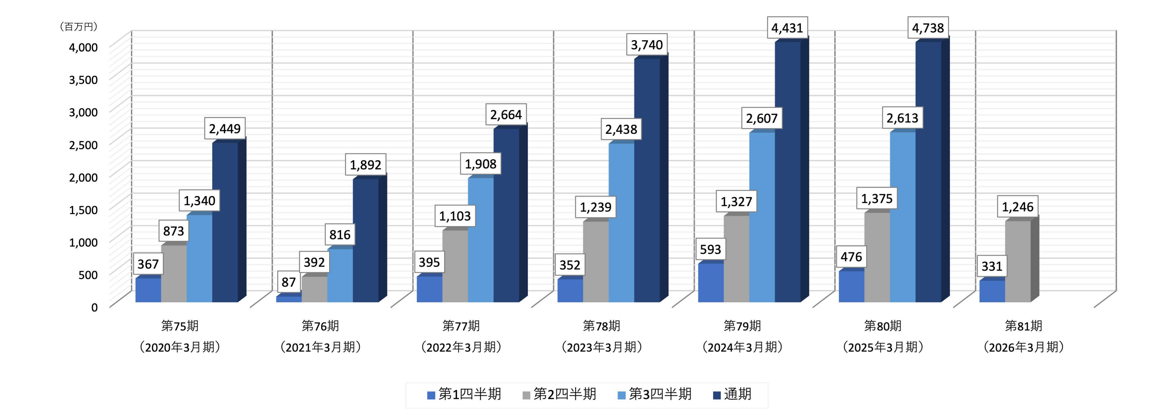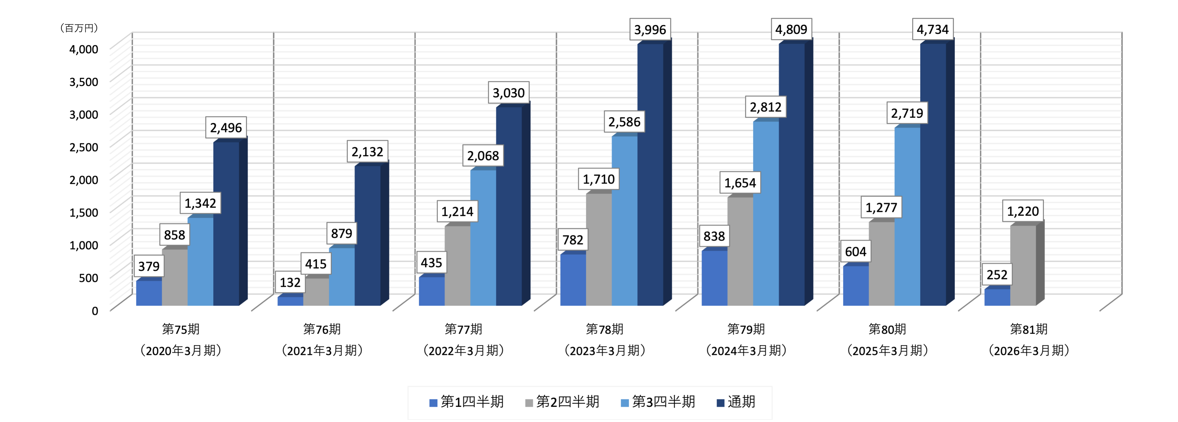 | 経常利益 | 3,445 | 2,496 | 2,132 | 3,030 | 3,996 | 4,809 | 4,734 |