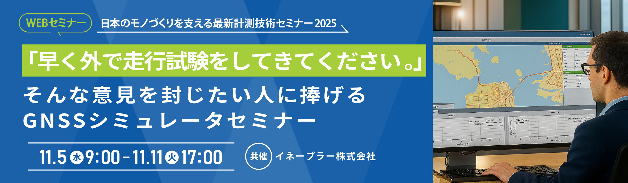 「GNSSシミュレータって本当に必要?」という社内の声に、技術的な説得力で応えるセミナーです。