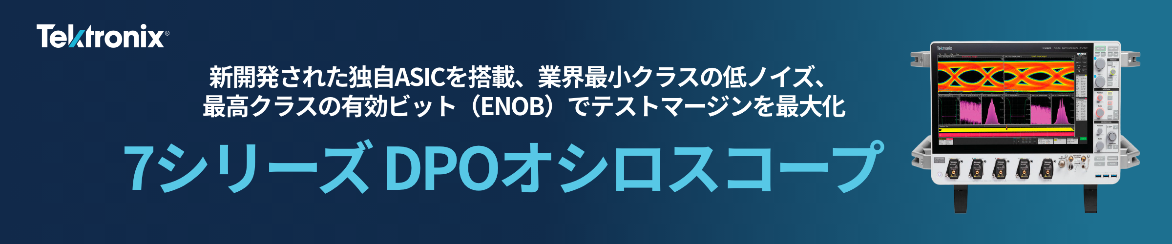 7シリーズDPO(デジタル・フォスファ・オシロスコープ)は、比類のない信号忠実度と高いENOB、低ジッタ設計、高速スループット、直感的なユーザー・インターフェースを兼ね備え、高速シリアルや高エネルギー物理、RFアプリケーションにおける進化する計測課題に対応します。